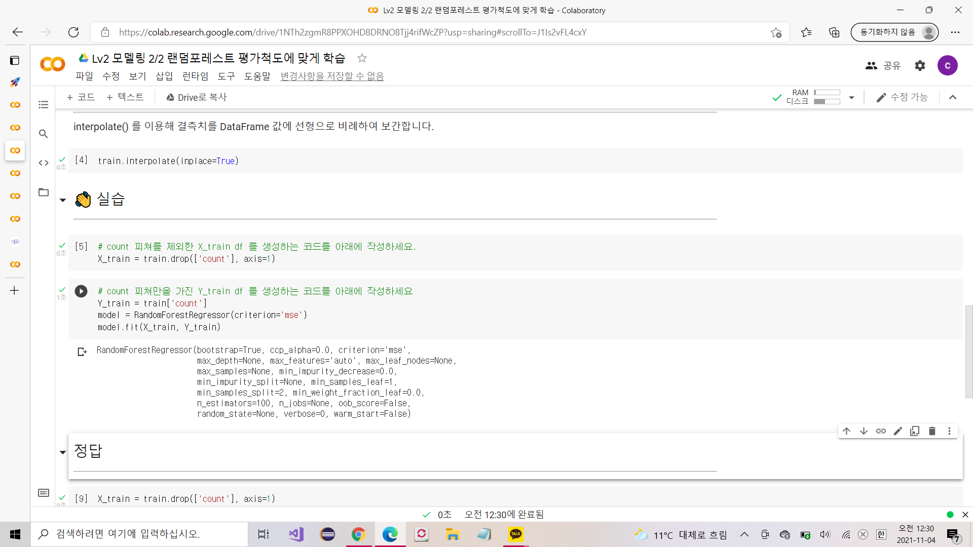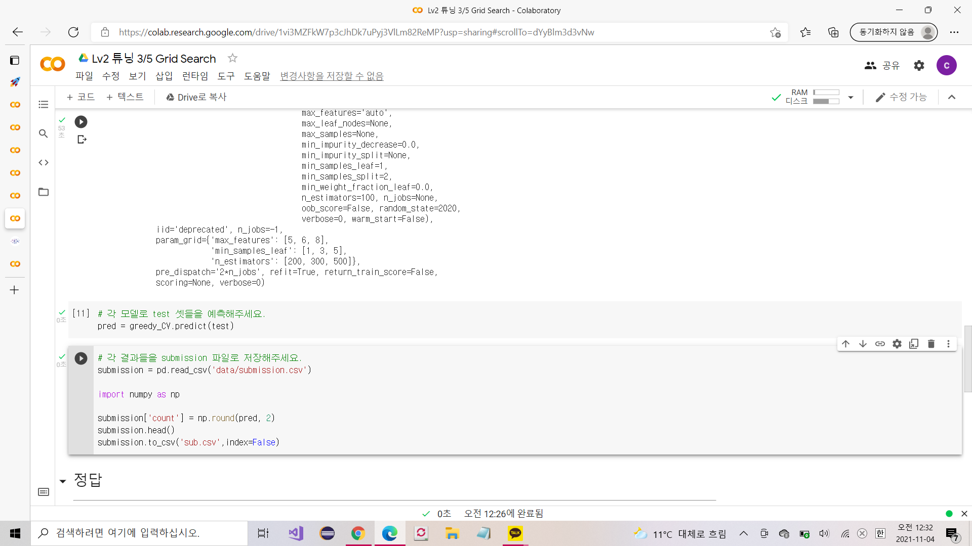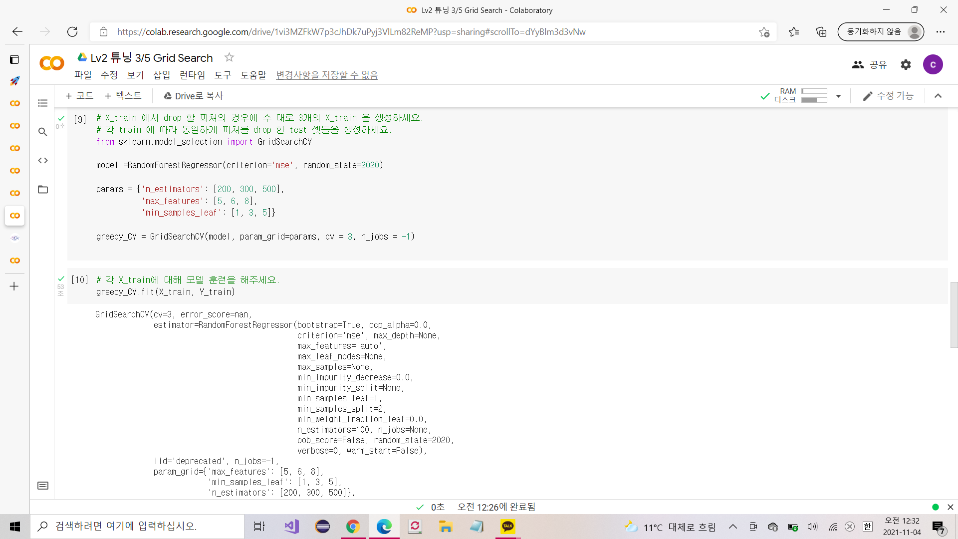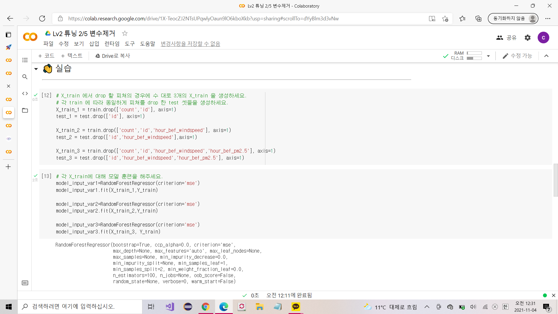 (2) 파이썬 랜덤포레스트를 평가척도에 맞게 학습