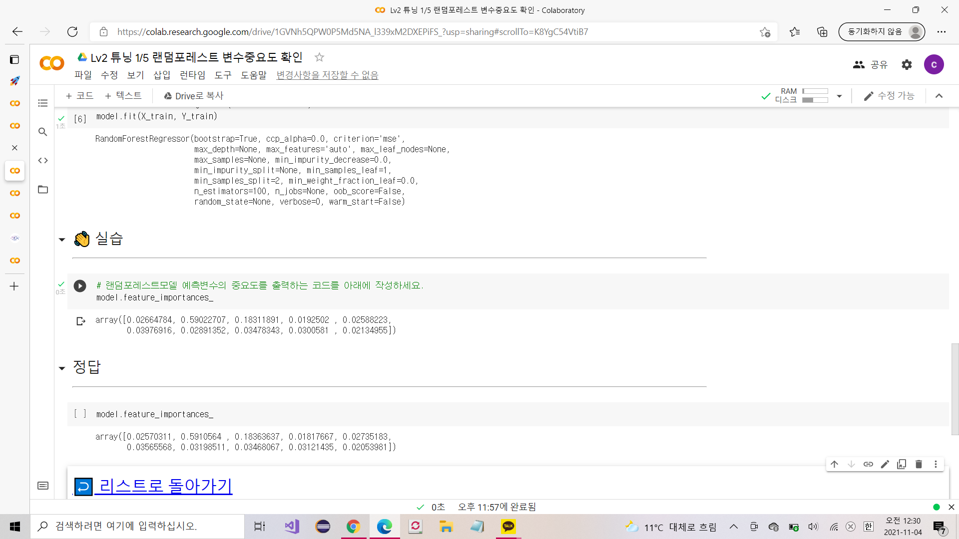 fit() 으로 모델이 학습되고 나면 feature_importances_ 속성(attribute)로 변수의 중요도 파악 가능