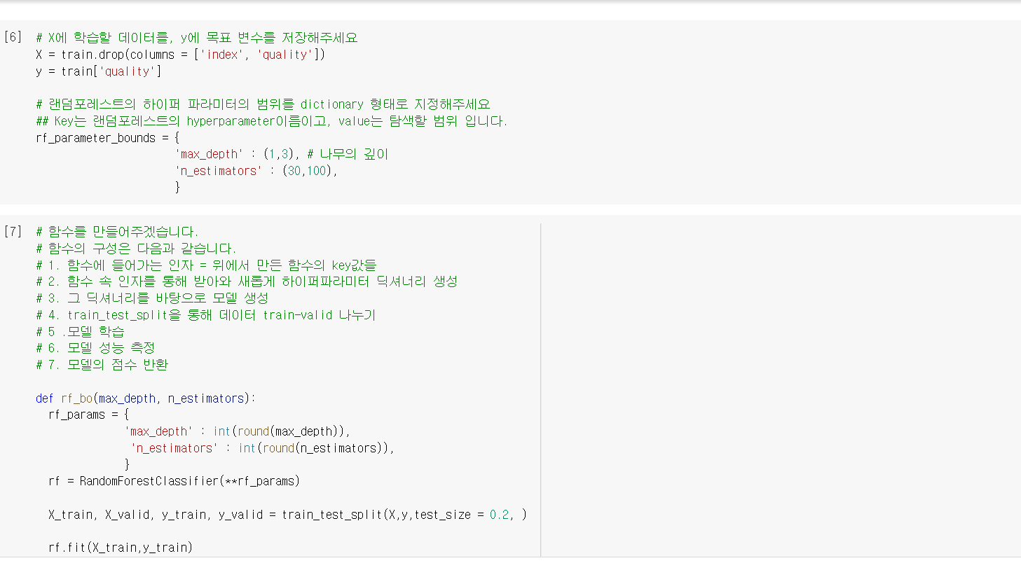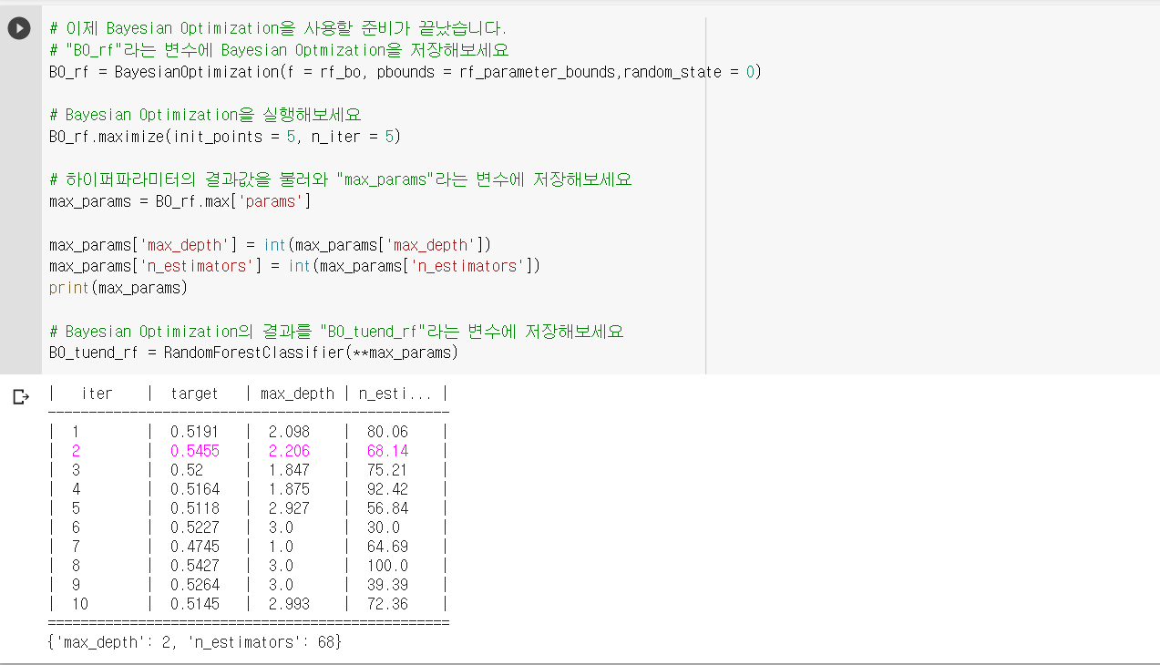 2. Bayesian Optimization 패키지를 통해, 하이퍼 파라미터의 범위 속 값들을 랜덤하게 가져옴