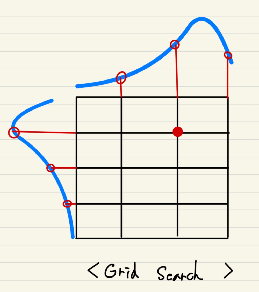 기법 : 사전에 탐색할 값들의 범위를 지정하고, 그 범위 속에서 가능한 조합을
