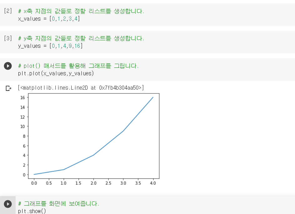 plt.axis(['x축 최솟값, x축 최댓값, y축 최솟값, y축 최댓값'])