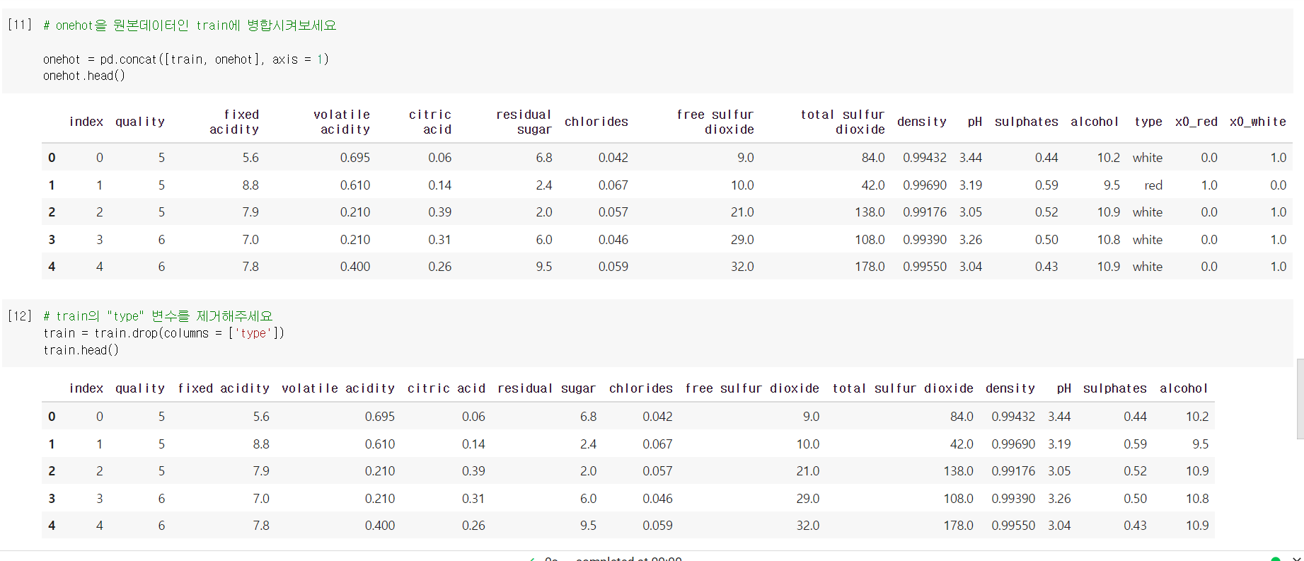 컴퓨터는 '문자'로 데이터를 학습할 수 없어 'type' 같은 피쳐들은 컴퓨터가
