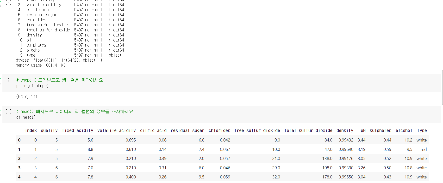 4) head() 메서드 : 데이터 대략적 정보 파악
