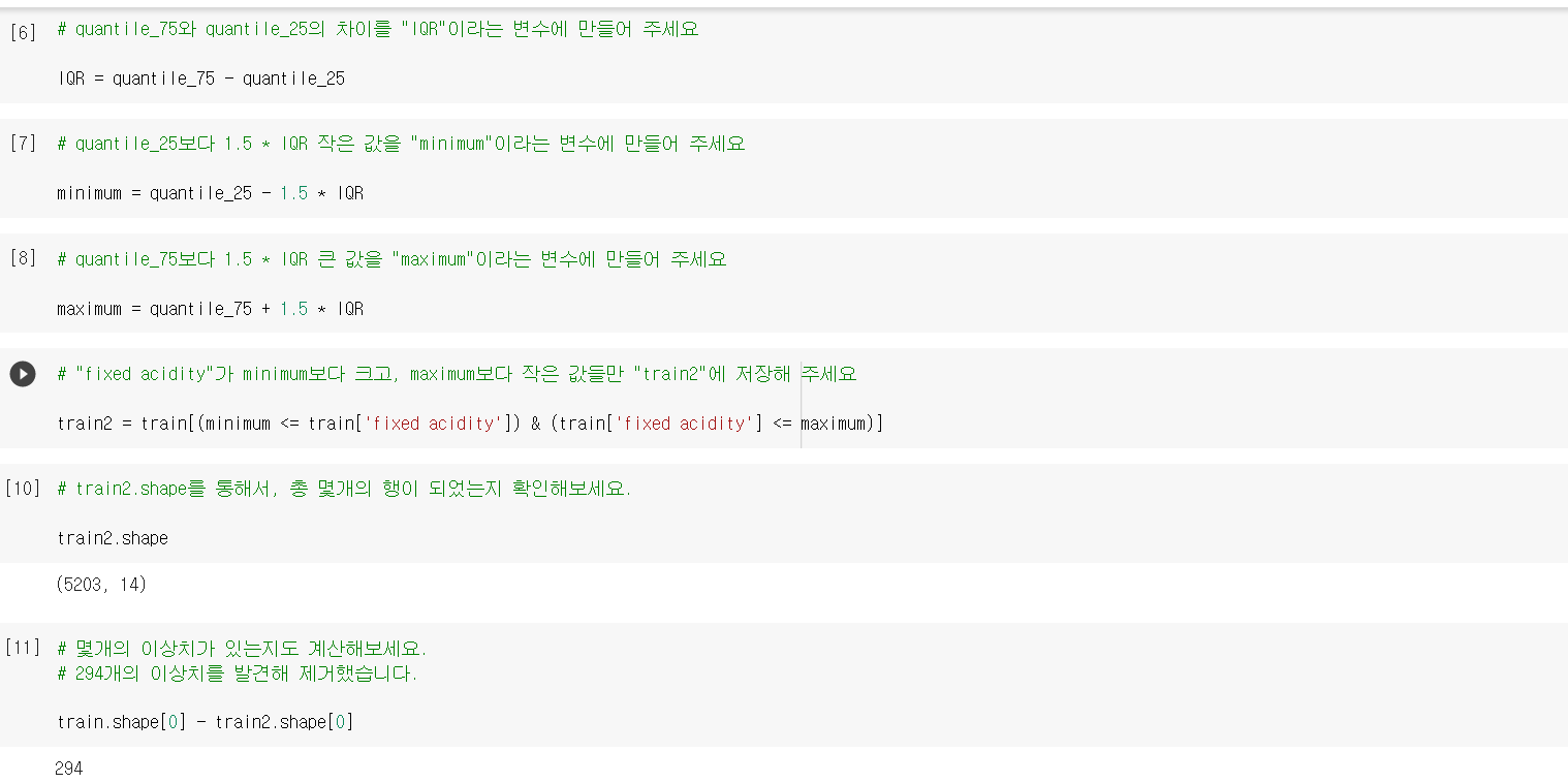 IQR를 통한 이상치 제거